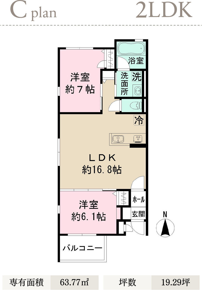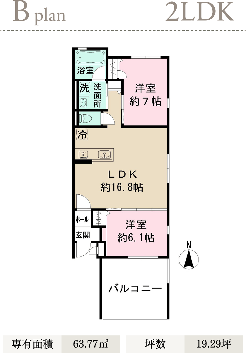 南向きバルコニーと16.8帖の広々としたLDKが光と風を招く。