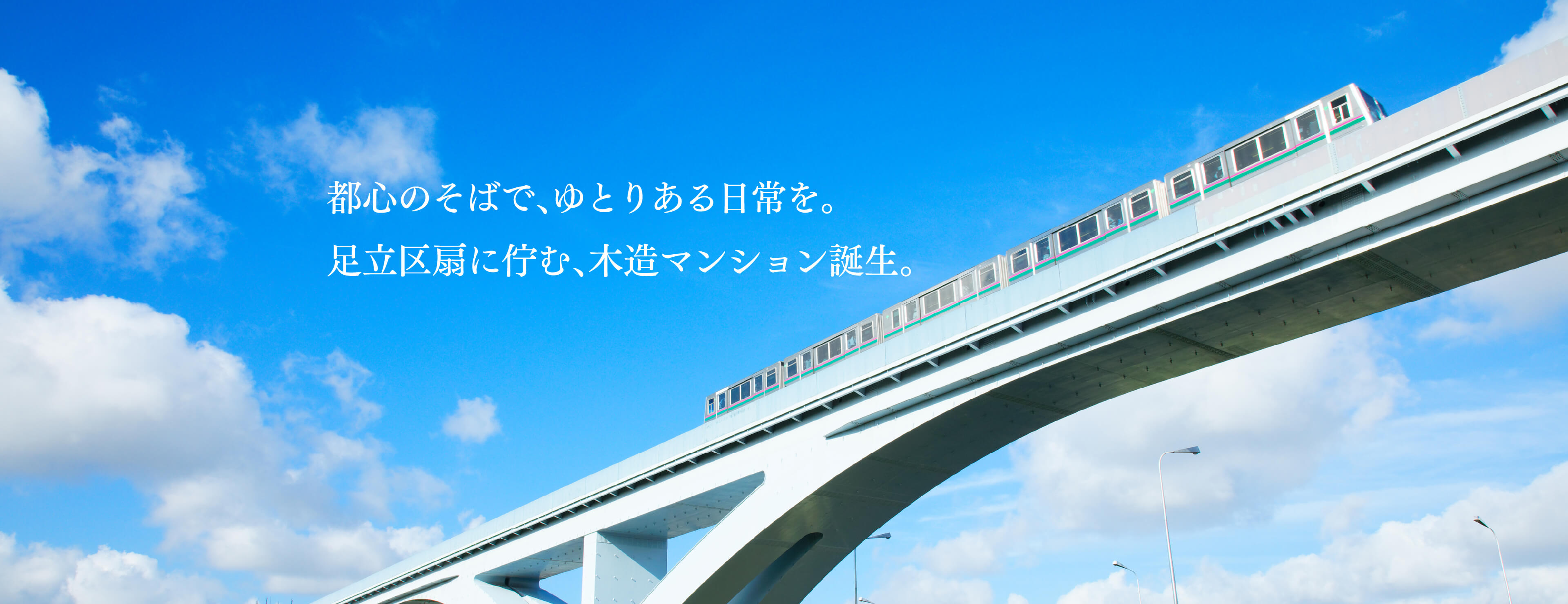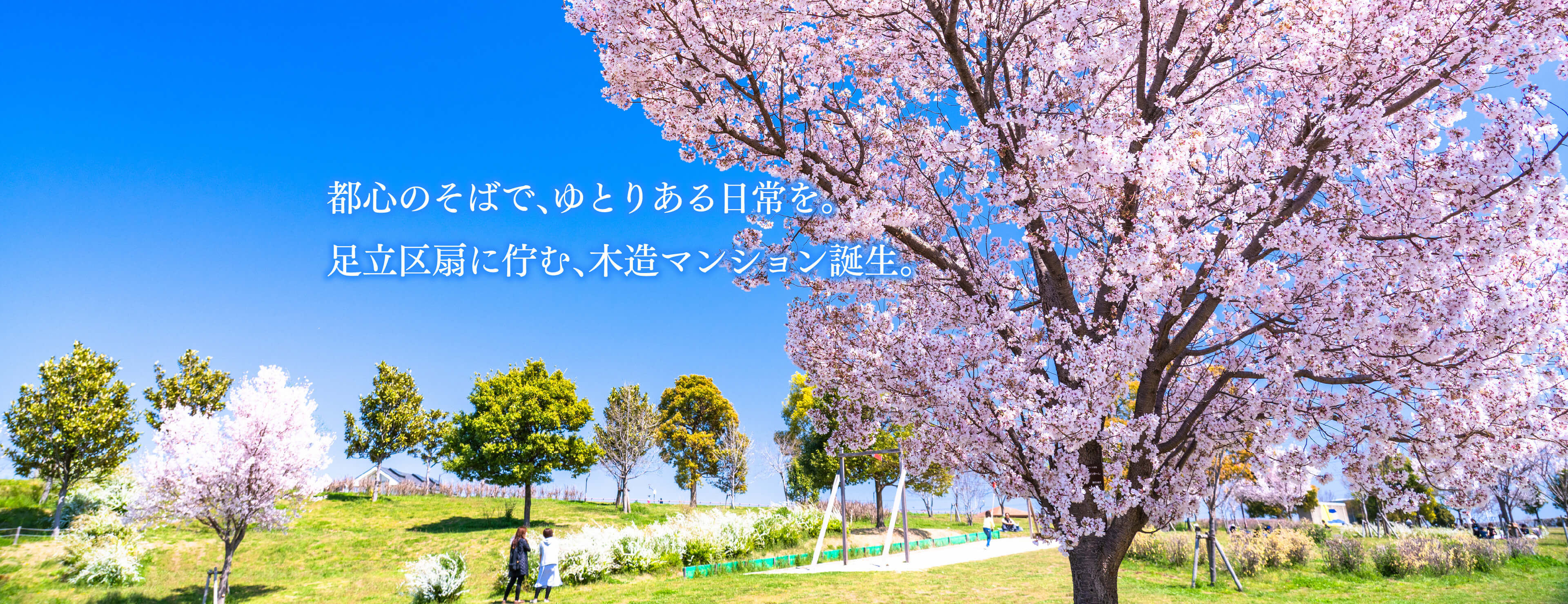 扇大橋駅徒歩2分。 耐震等級3・ZEH-M基準の高性能木造マンション。利便性と荒川の自然が調和する街で、1LDK・2LDKの快適な暮らしを。