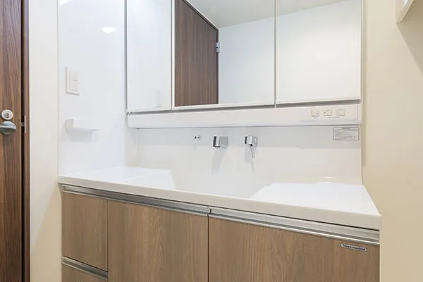 機能的な洗面台で、忙しい時間帯の身支度がストレスなく進められます。
